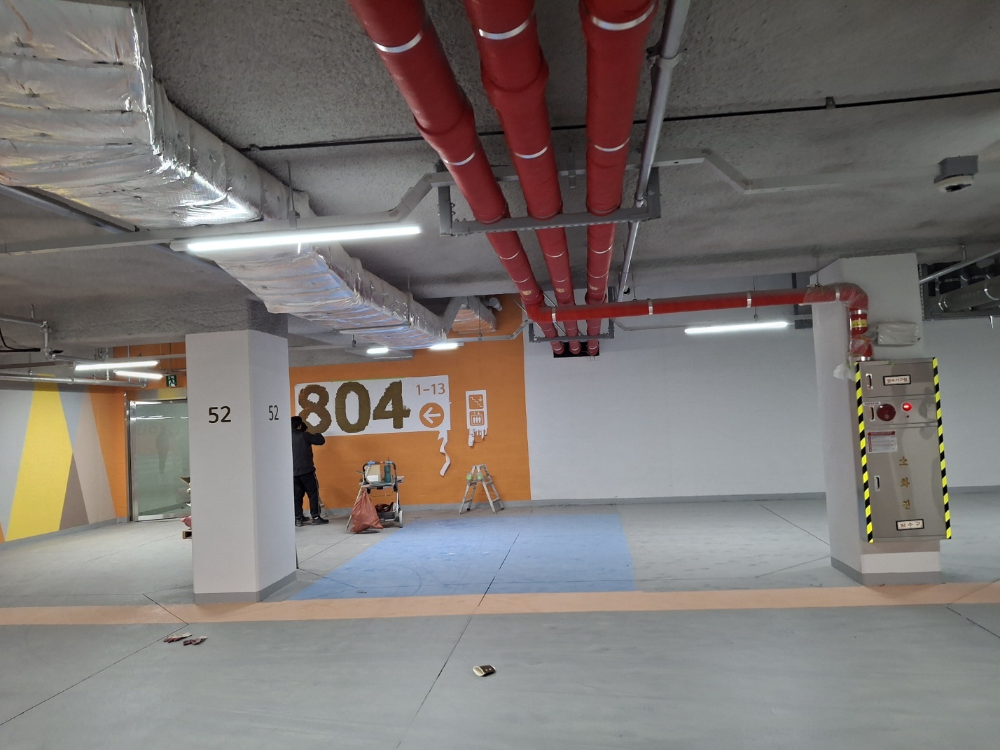 • 양산사송현장_지하 출입구 그래픽도장 마감 및 지하도장 잔손보기