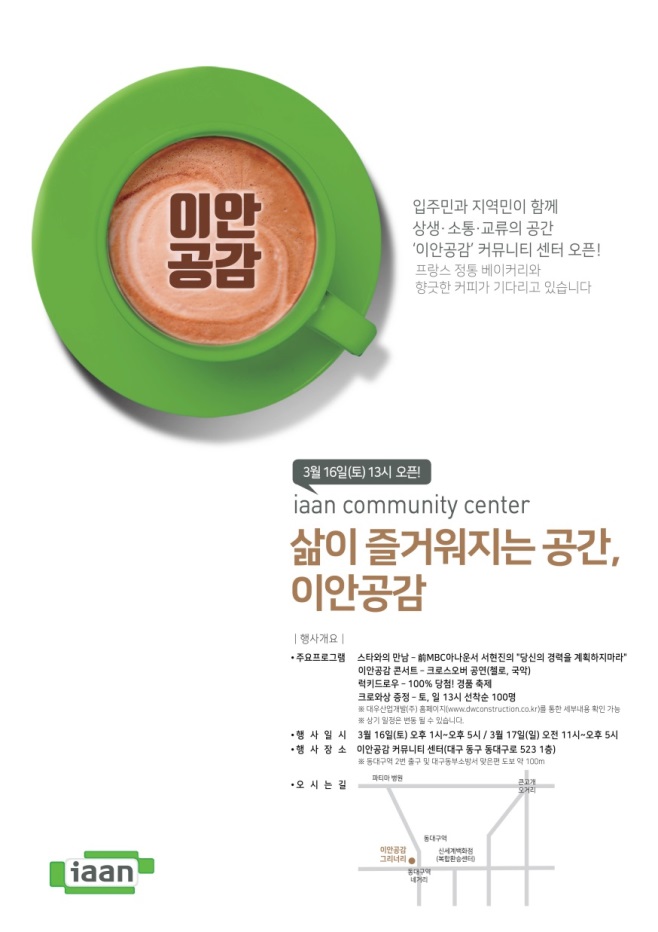 대우산업개발의 생활문화공감 프로젝트 ‘이안공감 커뮤니티센터’가 지난해 서산지역에 이어 대구지역에서도 문을 연다.